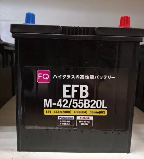 Аккумулятор, FQ 55B20L, EFB, 44 Ah, азия, тонкие клеммы, обратная полярность