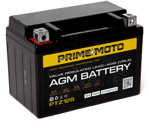 Мото Аккумулятор PRIME MOTO 12В 12 А/ч (СТ1211, YTZ12S) для мотоцикла, мопеда, скутера, ИБП, 12V 12Ah